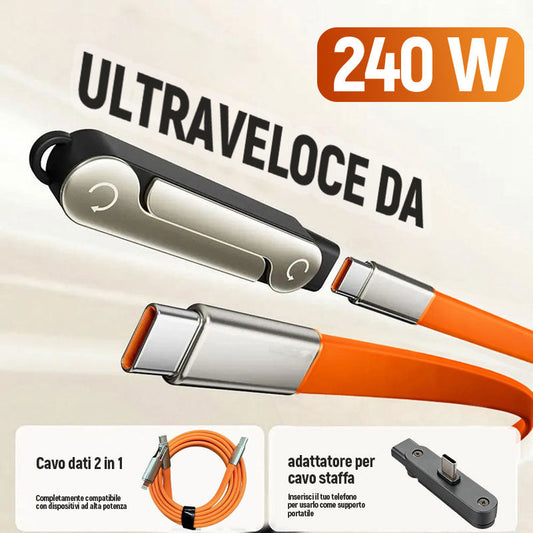 2-i-1 laddningskabel med 240W SuperCharge, 360° roterbart & osynligt stativ, avtagbar design
