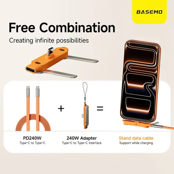 2-i-1 laddningskabel med 240W SuperCharge, 360° roterbart & osynligt stativ, avtagbar design