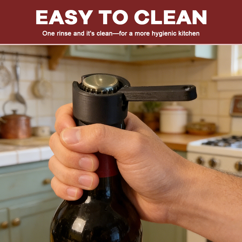 Placera bara enheten över flaskhalsen och tryck ner den robusta spaken för att öppna flaskan pÄ nÄgra sekunder. Den smarta mekaniska konstruktionen maximerar kraften, vilket gör att flaskan öppnas smidigt utan att du behöver anvÀnda handledskraften.