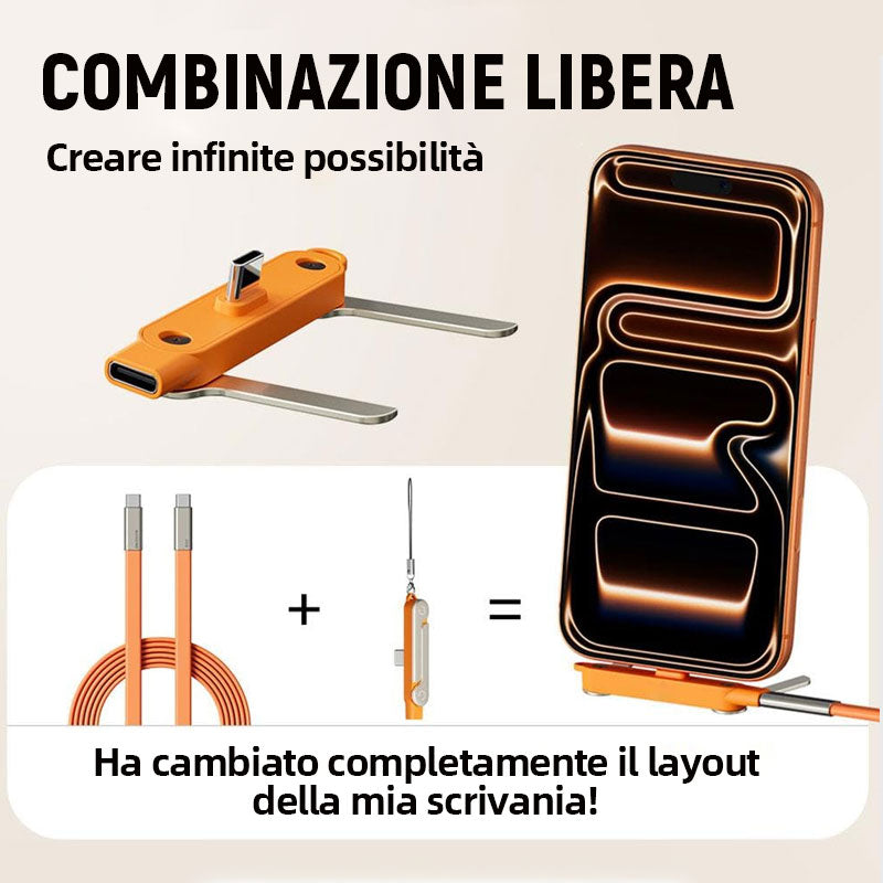 2-i-1 laddningskabel med 240W SuperCharge, 360° roterbart & osynligt stativ, avtagbar design